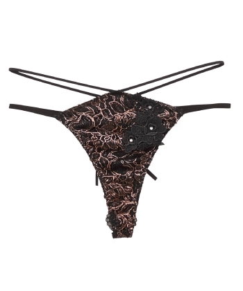 大きく大胆にカットされたストレッチレースをストリングコードでレースアップ。