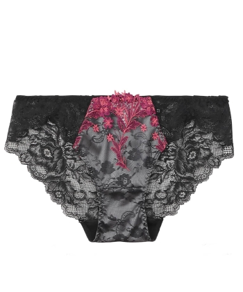 スカートのような巾広レースに、アーチ状のパイピングが透けるモードな佇まい。