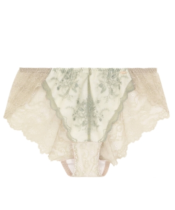 おへそまでしっかり包み込んでくれて、人気のハイライズショーツは華やかさもありながら安定感も◎。バックまで伸びやかなフルレースで、女性らしい印象を与える。
